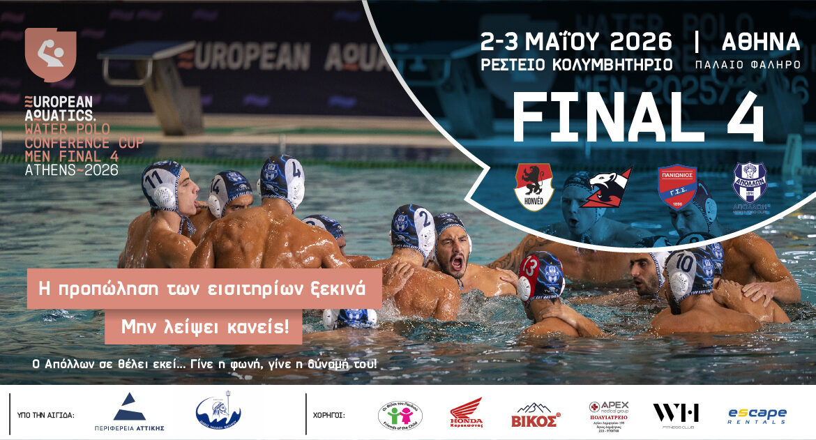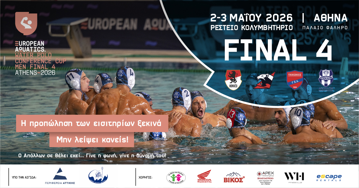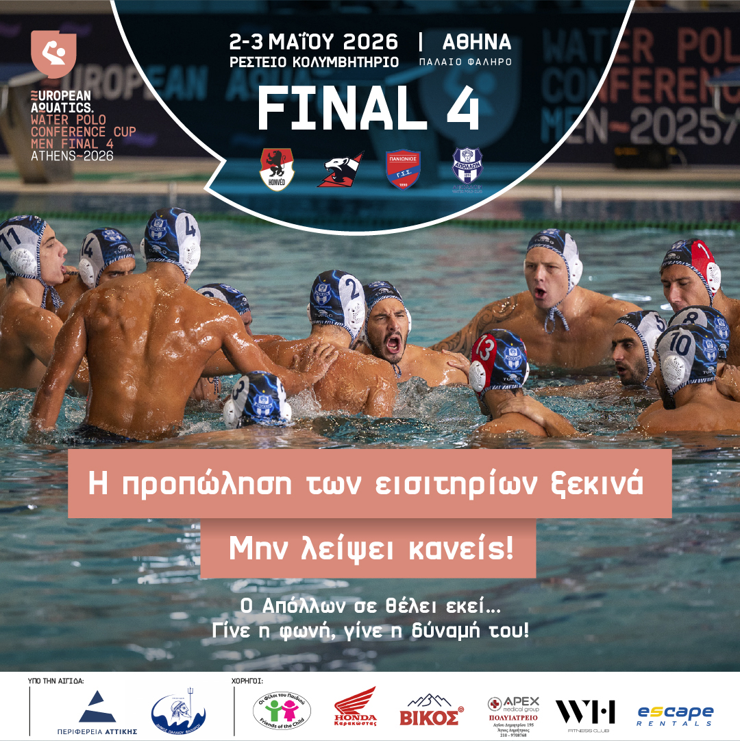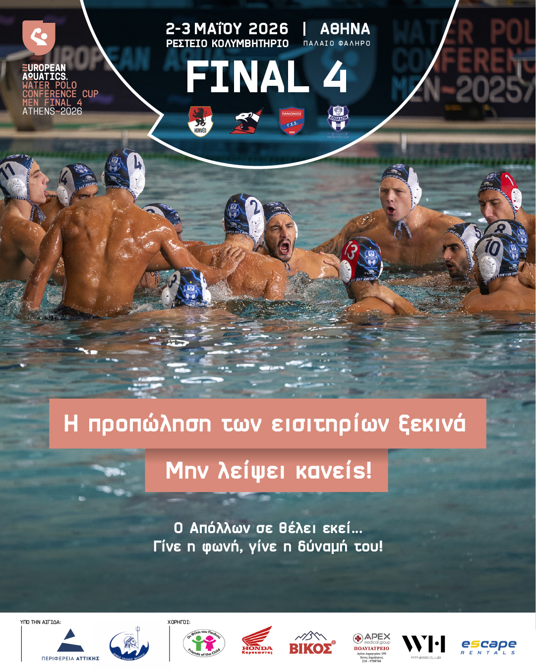 Η μεγάλη ώρα του Final 4 του Conference Cup για τον Απόλλωνα Σμύρνης , πλησιάζει. Το επόμενο διήμερο 2-3 Μαΐου στο Ρέστειο κολυμβητήριο του Παλαιού Φαλήρου η… αμφίβια «ελαφρά ταξιαρχία» θα δώσει τη δική της «μάχη» για να φτάσει ως το τέλος της διαδρομής της νεοσύστατης ευρωπαϊκής διοργάνωσης και ήδη η αδρεναλίνη έχει αρχίσει να… χτυπά στο «κόκκινο».
