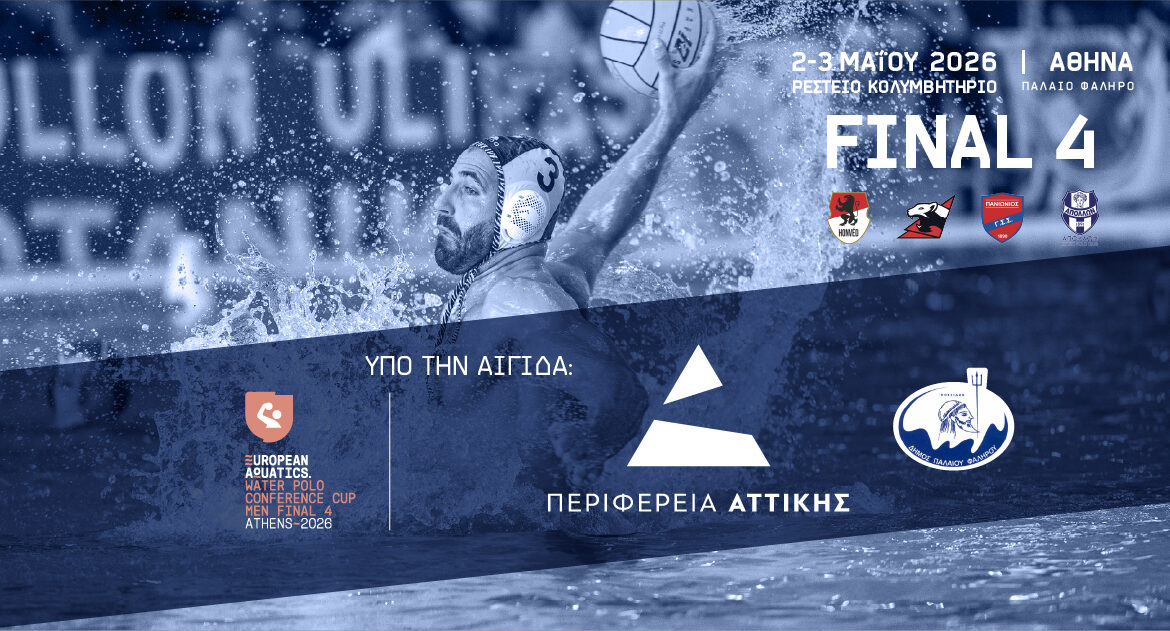 Το σπουδαίο αθλητικό γεγονός του Final 4 του Conference Cup το διήμερο 2 και 3 Μαΐου στο Ρέστειο Κολυμβητήριο του Παλαιού Φαλήρου έχει ως βασικό υποστηρικτή την Περιφέρεια Αττικής!